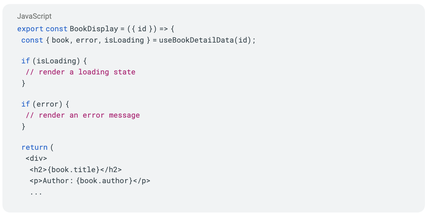 We would then modify the BookDisplay component to use the custom hook like this:
